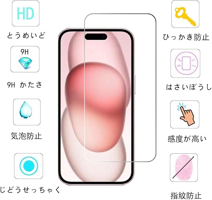 【2枚セット】 対応 iPhone 15 Plus/15 Pro Max フィルム 強化ガラス 旭硝子製 対応 iPhone 15 Plus/15 Pro Max ガラスフィルム 全面保護 硬度9H 飛散防止 指紋防止 自動吸着 気泡防止 液晶保護フィルム
