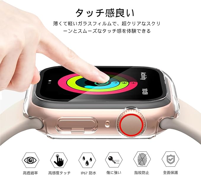 【全面保護】この製品はPC+ 強化ガラス素材を採用して、日常生活での衝撃から Apple Watch を保護します。硬度 9H の強化ガラスで、超クリアな画面を提供して、なお画面の損傷を防止および回避し、Apple Watchをしかっり保護します。