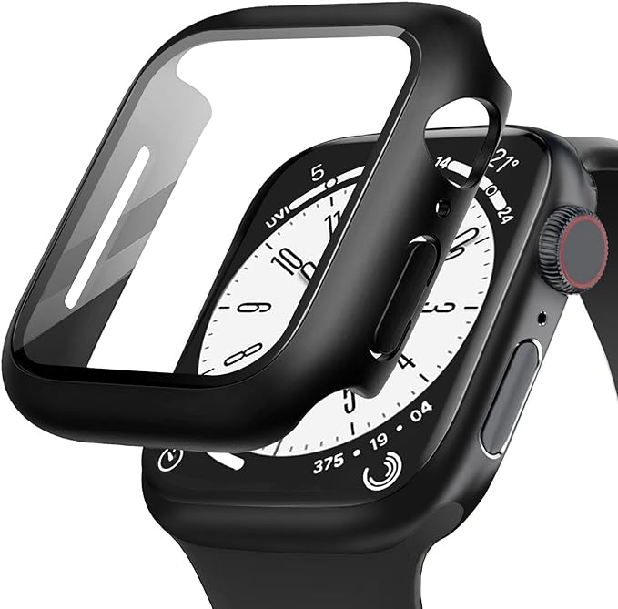 POLINK for Apple Watch用 ケース Series 10/9/8/7/6/5/4/SE2/SE 45mm PC素材 強化ガラス アップルウォッチ 保護用カバー 超薄型 高耐久 耐衝撃 高透過率 指紋防止 for Apple Watch用 カバー 全面保護 ブラック