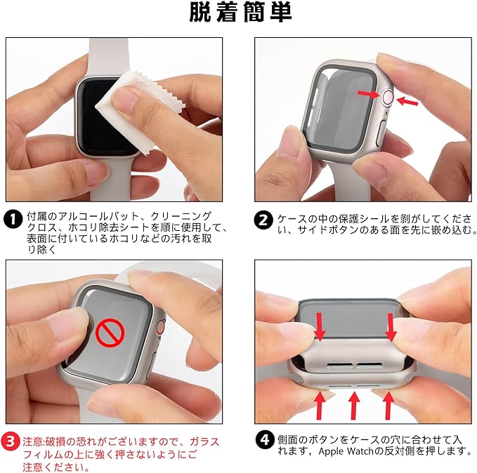 【全面保護】この製品はPC+ 強化ガラス素材を採用して、日常生活での衝撃から Apple Watch を保護します。硬度 9H の強化ガラスで、超クリアな画面を提供して、なお画面の損傷を防止および回避し、Apple Watchをしかっり保護します。