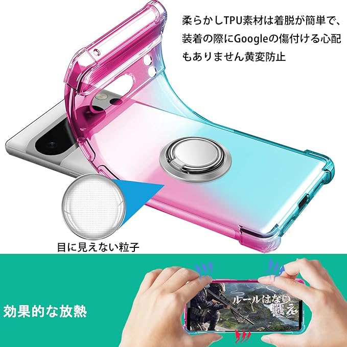 Google Pixel 8 Pro ケース リング TPU 薄型 軽量シリコン グラデーション色 ケース 耐衝撃 指紋防止 車載ホルダー対応 防塵 一体型 人気 携帯カバー(ピンクグリーン)
