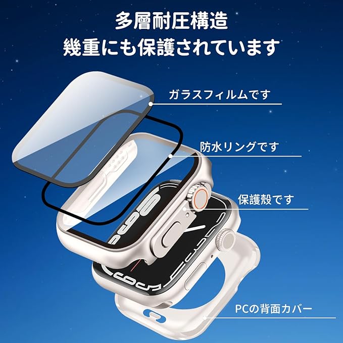 TEMEDO 対応 Apple Watch ケース Series 9/8/7 アップルウォッチ カバー PC素材 防水 2 in 1 前後の保護 Apple Watch カバー 全面保護 二重構造 アアップルウォッチ ケース ガラスフィルム 一体型 高耐久 高透過率 装着簡?(45mm, Ultra風のスターライト)