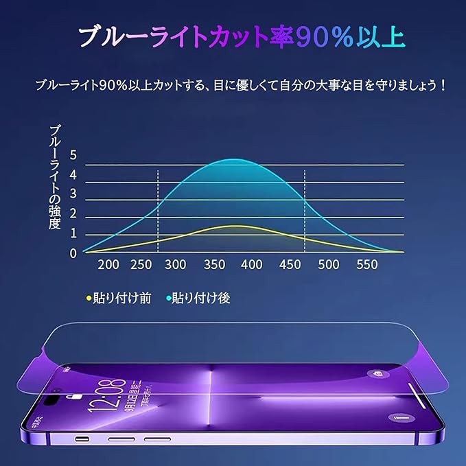 ?【ブルーライトカット・目の疲れ軽減】スマートフォンの時代では、人々はより多くの時間を電話の画面を見つめて過ごします。ただし、画面が多くのブルーライトを生成し、人々の目に害を与え、近視の度合いを深め、視覚疲労を引き起こし、睡眠障害があるかもしれません。ブルーライトカット反射技術によりブルーライトを大幅にカットでき、目に掛かる負担を軽減させ、画面を長時間眺める方に効果を発揮します。(ご注意:ブル