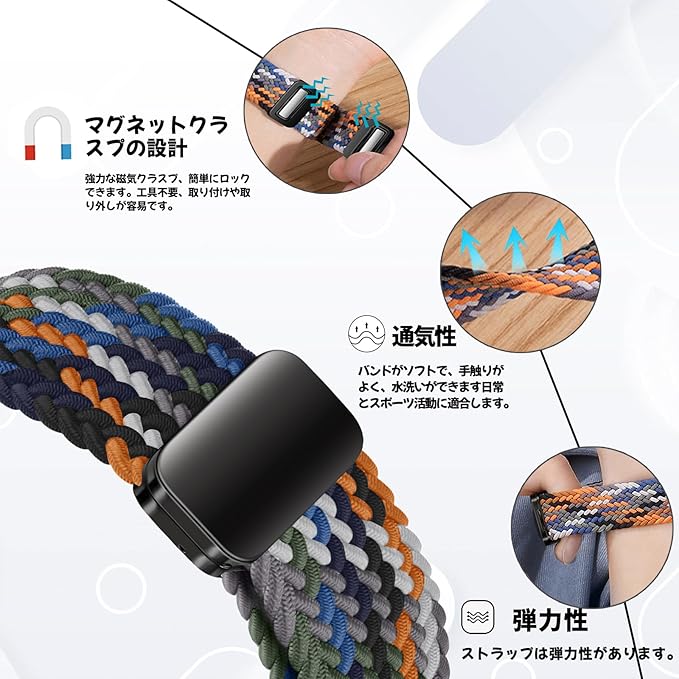 [PONATTENO] For Google Pixel Watch 2 / Pixel Watch対応バンド 交換ベルト 弾力性 編み込み交換用ストラップ 磁気吸着取り付け 簡単取り付け 通気 無段調節可能 男女兼用1