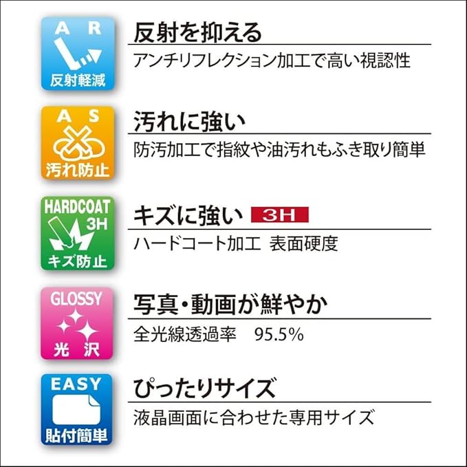 【キズに強い表面硬度3Hのハードコード加工】クラス最高水準(鉛筆硬度3H)を実現したハードコート加工がキズから液晶画面を守ります。