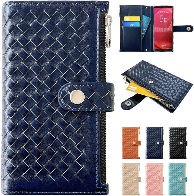 Xperia 5 Ⅴ SO-53D ケース 手帳型 SOG12 カバー XQ-DE44 手帳型ケース SO-53Dケース SO-53Dカバー SO-53D手帳型ケース スマホケース SOG12ケース SOG12カバー SOG12手帳型ケース エクスペリア おしゃれ 編み込み スマホケース 携帯ケース ネイビー