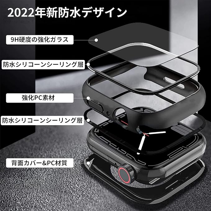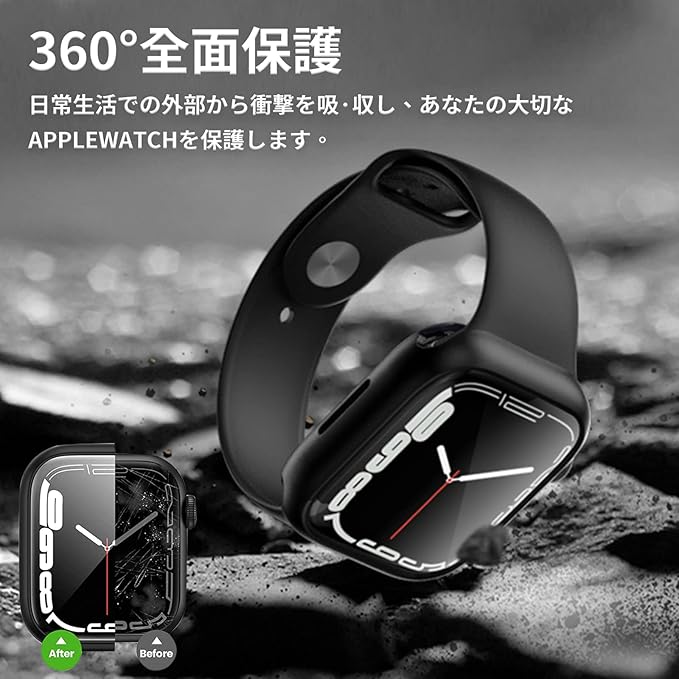 【2重構造、ダブル保護】今までの保護ケースを基に改良し、防水機能が向上しました。耐久性と柔軟性にPC素材+硬度9Hの強化ガラス、背面のハードフレームと組み合わせて、360フルボディ保護、偶発的な落下から時計を保護します。