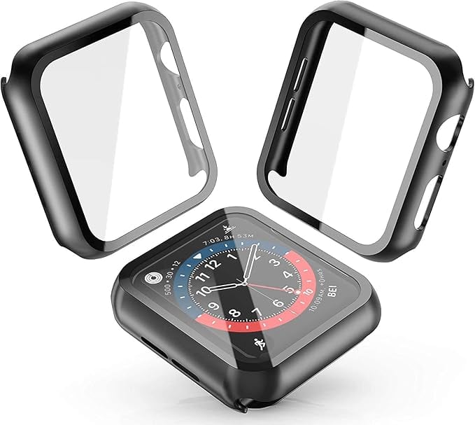 【2枚】Smilelane 対応 Apple Watch Series 9 / Series 8 / Series 7 45mm ケース, アップルウォッチ 全面保護カバー, 一体型 PC+強化ガラス素材 超薄型 装着簡単 高透過率 高耐久 耐衝撃 指紋防止 傷防止 (2ブラック)