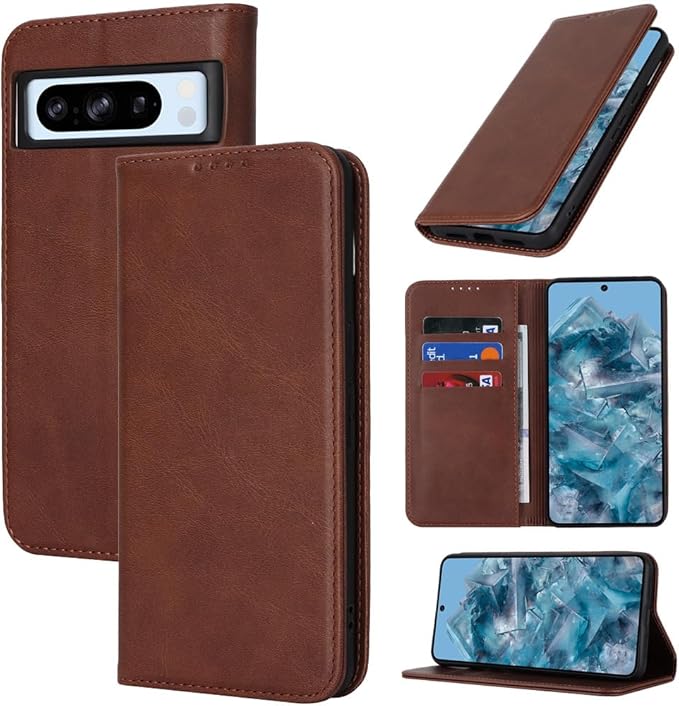 Pixel8 pro ケース 手帳型 スマホケース グーグルピクセル8プロ カバー 手帳型 カードスロット、キックスタンド レザー(ダークブラウン)