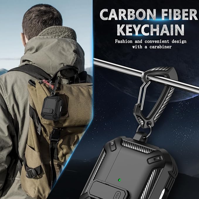 Polislime AirPods第3世代用ケース クリーナーキット付き、カーボンファイバー製フルボディ耐衝撃ハードシェル保護デザインケース Apple Airpods 3 Gen充電ケース[安全なロッククリップ付き](ブラック)