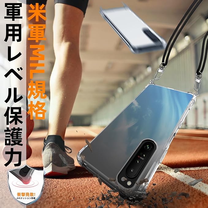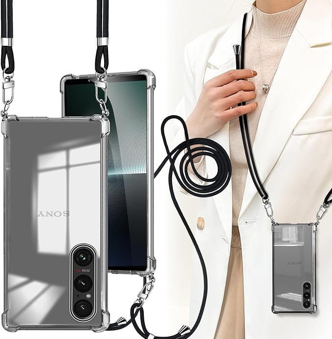 Xperia 1 V ケース ショルダー クリア SO-51D/SOG10 カバー 耐衝撃 TPU 肩がけ 首掛け 紐付き 薄型 縄掛け ケース 斜めかけケース 軽量 取り外し可能 調節可能な ショルダー 肩がけ 首掛け 紐付き 透