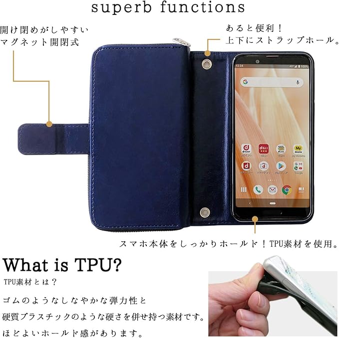 AQUOS sense8 SH-54D SHG11 SH-M26 用 手帳型 ケース カバー SH54D SH-54Dケース SH-54Dカバー SHG11ケース SHG11カバー アクオス AQUOSsense8 手帳 手帳型ケース 手帳型カバー 財布付き編み込み ネイビー