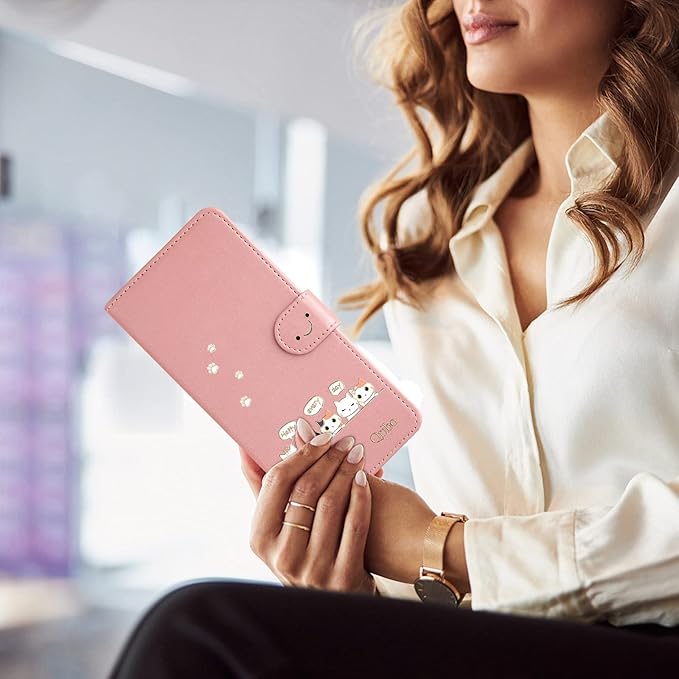 Qribo Xiaomi 13T Pro ケース 手帳型 Xiaomi 13T ケース シンプルなのに可愛いデザイン エンボス加工猫柄 うれしい気持ち シャオミ 13T カバー 6.67インチ対応 Xiaomi 13T / Xiaomi 13T Pro 手帳型ケース シャオミ 13TPro ケース 13Tプロ スマホケース 薄型 防水 の耐久性 滑り防止 美しい 贈り物 友達 - ピンク