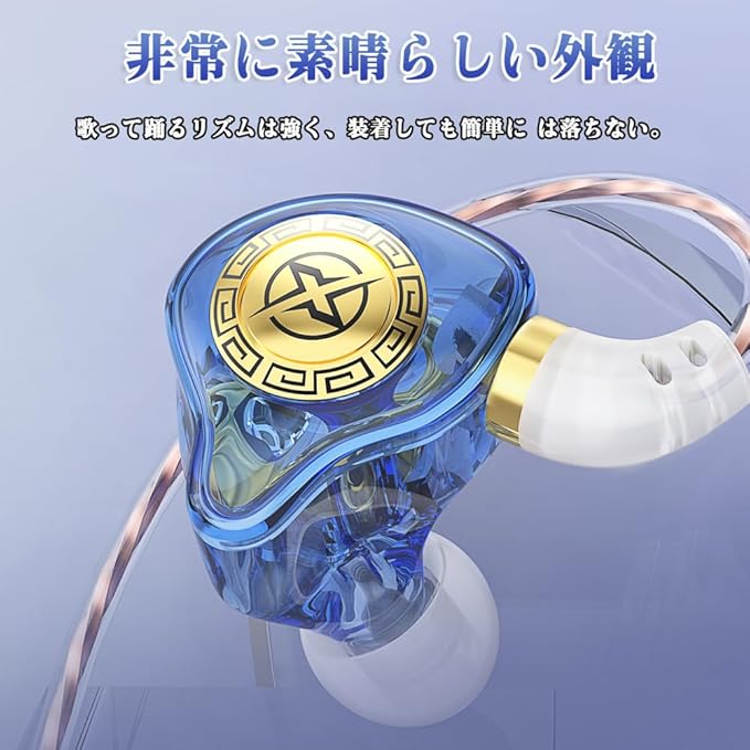 okcsc イヤホン 有線 ゲーミングイヤホン マイク付き 通話可能 有線イヤホン 快適な装着感 耳掛け型 遮音性 音漏れ防止 イヤフォン ゲーム/テレワーク/仕事/音楽/通勤/ジムなどに適用 ブルー