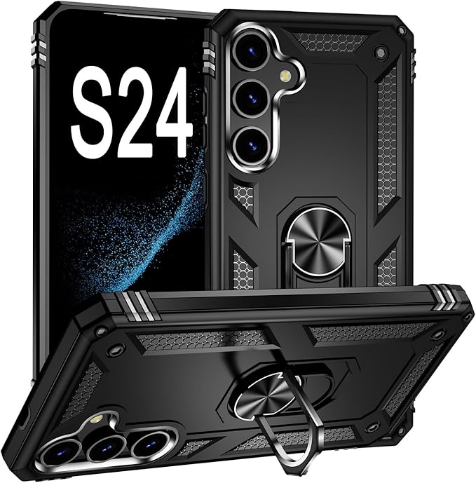 Cakublse Galaxy S24 ケース リング 耐衝撃 ぎゃらくしーS24ケース Galaxys24 ギャラクシーS24 ケース カバー リング付き スタンド付き ブラック 黑