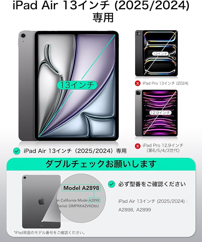 【互換性】:iPad Air 13インチ(2025/2024)専用です。モデル: A2898、A2899。他のiPadモデルと互換性がありません
