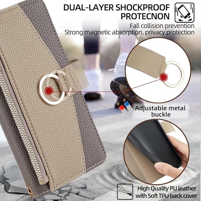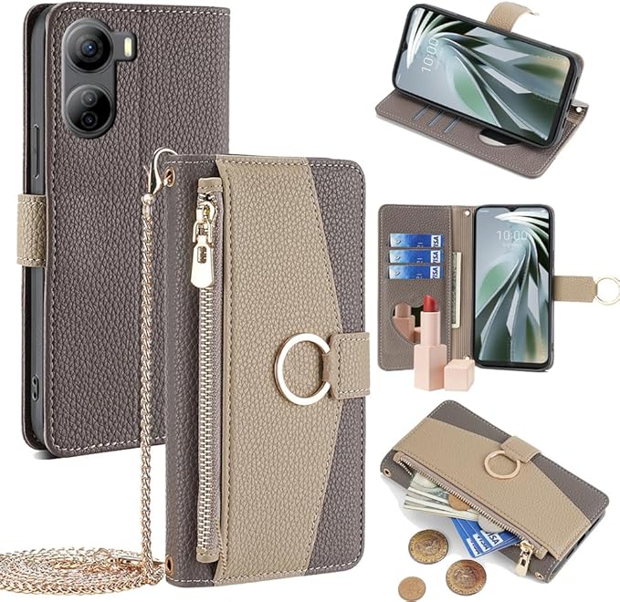 Libero 5g iv ケース リベロ5g4 スマホケース a302zt ケース ショルダー ストラップ付き スタンド機能 Libero 5G IV カバー カード収納 ミラー付き 耐衝撃 Libero 5G 4 ケース 肩掛け おしゃれ 女性 柔らかいTPU TOO&SOO 斜め掛け zte libero 5g iv ケース 適応 6.6 インチ - 茶色