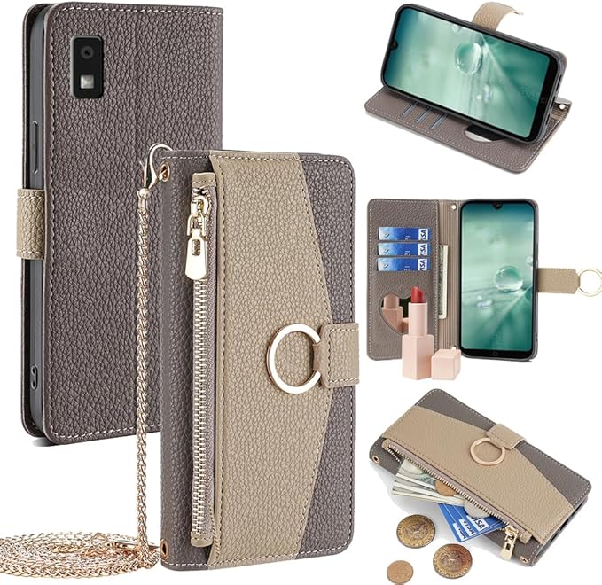 Aquos wish3 ケース アクオスwish3ケース sh-53d ケース ショルダー ストラップ付き スマホ aquos wish3 ケース a302sh ケース スタンド機能 カード収納 ミラー付き 耐衝撃 肩掛け スマホケース アクオス