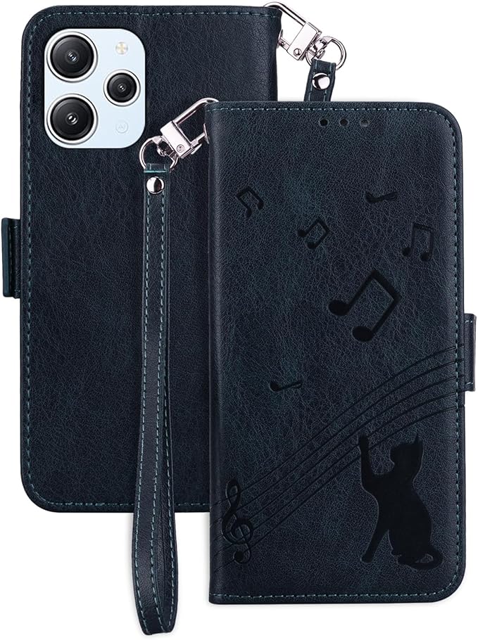 Xiaomi redmi 12 5g ケース レドミ12 5g スマホケース スタンド機能 マグネット カード収納 redmi 12 5g ケース 耐衝撃 全面保護 シャオミ12 かわいい猫と音楽のパターン 柔らかいTPU TOO&SOO redmi 12 5g xig03 ケース 手帳型 - 濃紺