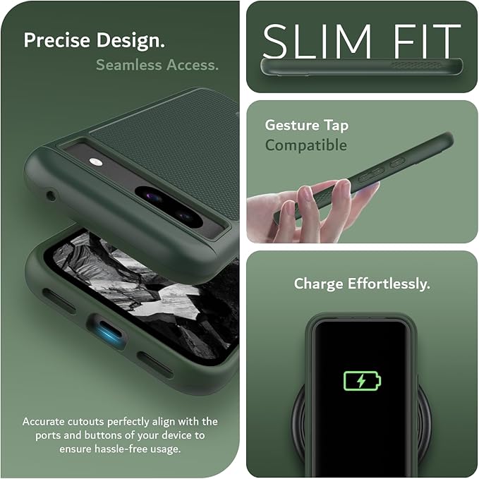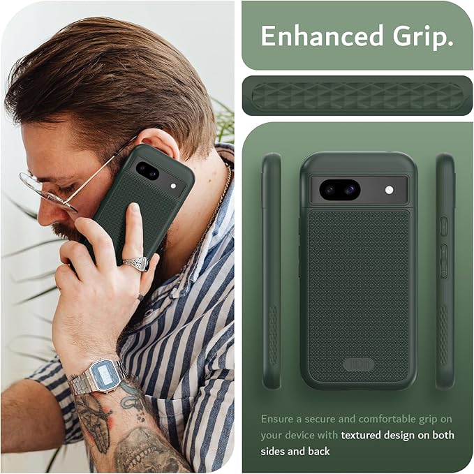 TUDIA DualShield グリップ設計 Google Pixel 8a 場合 (2024), [MergeGrip] 軍用グレードの二層耐衝撃スリムタフな滑り止め高耐久保護電話ケースカバー (パイングリーン)