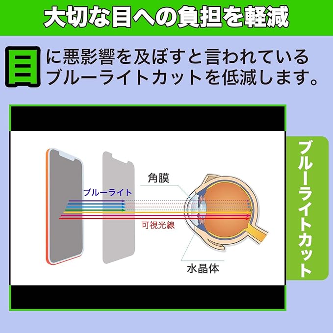 ブルーライトは約48%、紫外線は99%カットすることによって目の負担を軽減します。