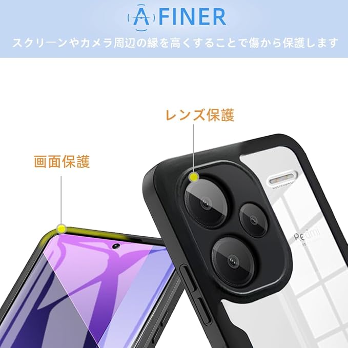 Xiaomi Redmi Note 13 Pro Plus + 5G ケース『AFINER』 360° 全面保護 前後 両面 カバー [高タッチパネル感度] 9H強化ガラス TPU+PC クリア スマホケース フルカバー 軽量 薄型 衝撃吸収 擦り傷防止 着脱簡単