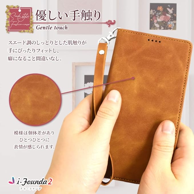 【iFounda2ケースの特徴】 深みのある色合いので、落ち着いた印象を与えます。 フェイクスエードを使用している為、肌ざわりよく手にフィットします。 また、耐久性もあり丈夫な仕上がりとなっております。