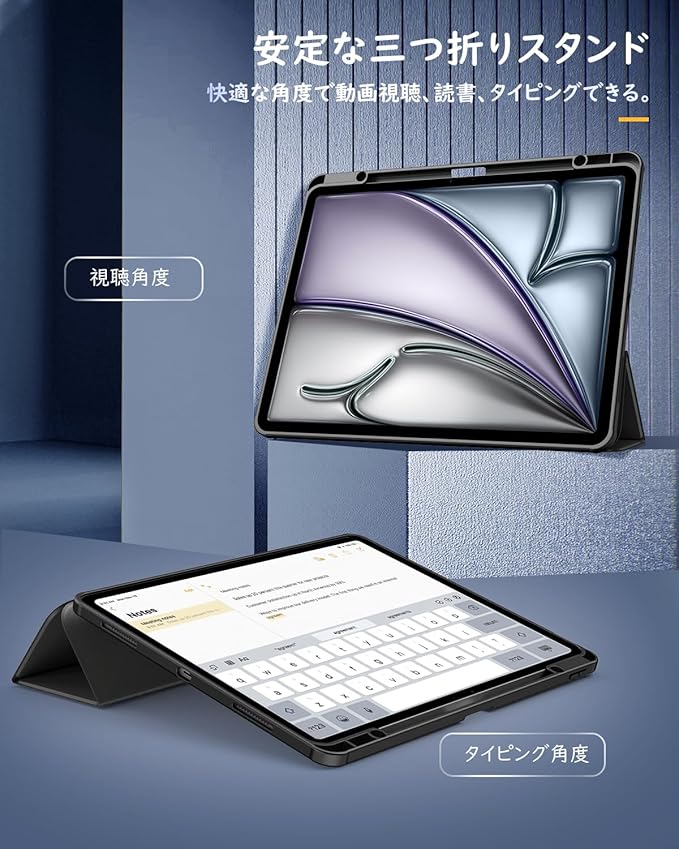 TiMOVO iPad Air 13インチ ケース(M3/M2)2025/2024 13インチiPad air M3 M2 カバー ペン収納 透明バック PencilProワイヤレス充電対応 PUレザー 三つ折り TPU スタンド オートスリープ機能付き 軽量 スマートカバー アイパッドエアー13インチケース Black