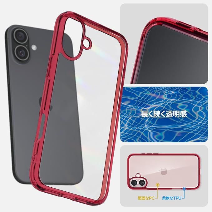 Spigen 【創業18年の技術力】iPhone 16 ケース クリア 耐衝撃 ストラップホール 黄変防止 バンパー 米軍MIL規格 ウルトラ・ハイブリッド ACS08203 (レッド・クリスタル)
