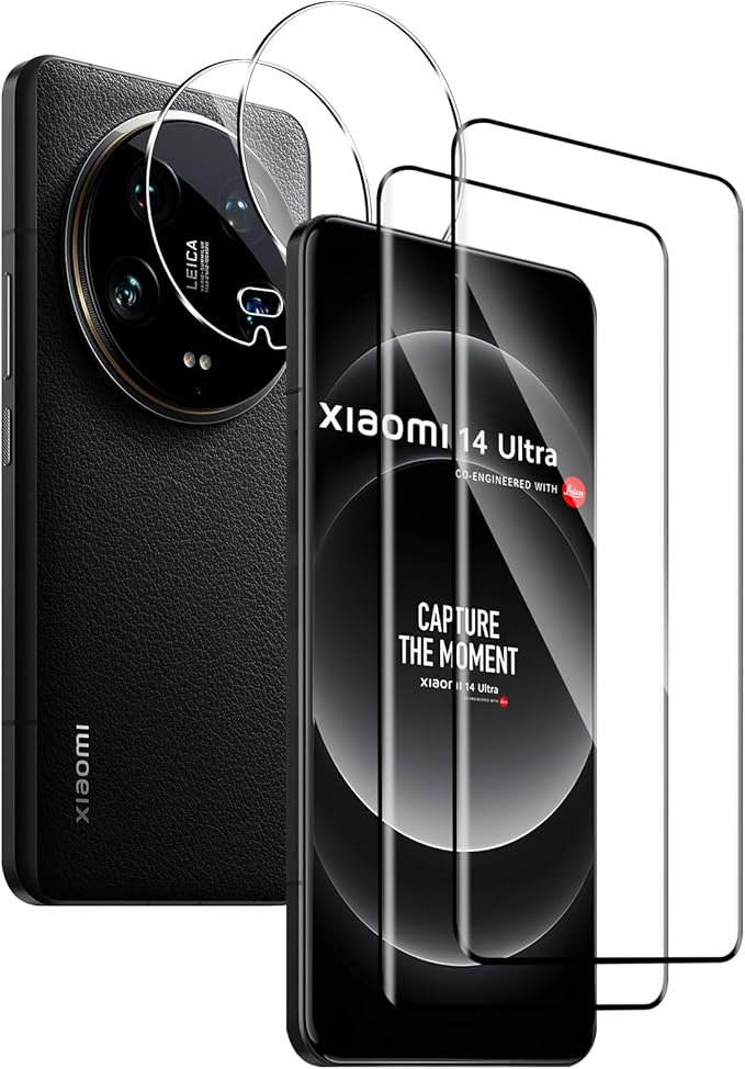 【2+2枚セット】For Xiaomi 14 Ultra ガラスフィルム(2枚)+ レンズ保護フィルム(2枚)硬度9H 日本旭硝子製 疎水疎油 指紋防止 液晶画面 超高透過率 HDビジョン 強化ガラス 全面保護 耐衝撃 飛散防止 高感度タッチ 気泡ゼロ 自動吸着 貼り付け簡単