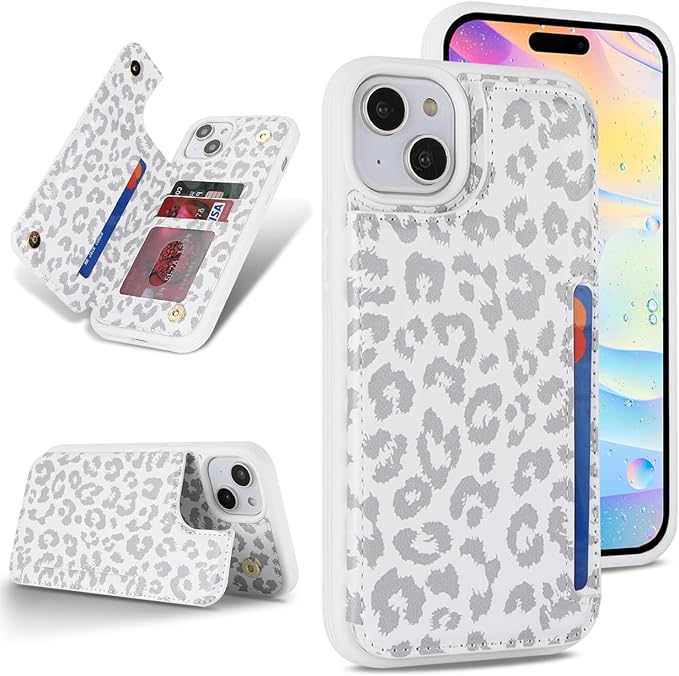 Sailortech iPhone 15 背面ケース 翻盖型 アイフォン 15 ケース アイフォン 15 カバー 財布背面手机? 手帳ケース 収納付き 磁気クラスプ 小銭入れ IC カード収納 財布型 実用 横置き機能 防塵 ?量 落下防止 iPhone15 ケース 背面収納 携帯カバー【選べる8色】6.1in-ホワイトレオパード