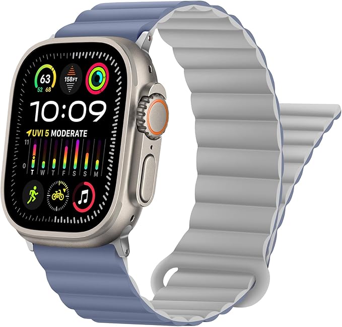 [HITZEE] Band コンパチブル Apple Watch バンド 49mm 46mm 45mm 44mm 42mm 41mm 40mm 38mm 両面ウェアラブルシリコン磁気バンド Apple Watch Ultra 2 Ultra シリーズ 10 9 8 7 SE 6 5 4 3 2 1 に対応(42mm/44mm/45mm/46mm/49mm,グレーブルー)