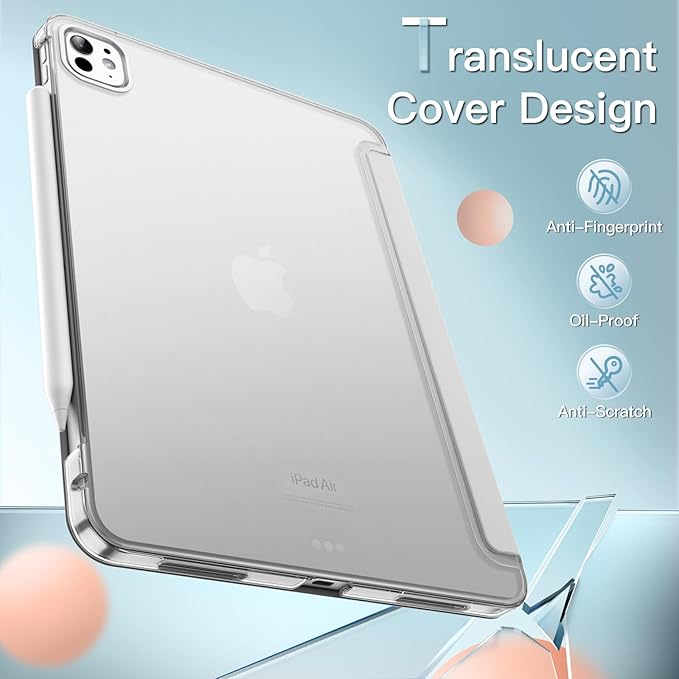 JETech iPad Pro 11インチ M4 2024 (第5世代) 用ケース スリムスタンド ハードバック ウェイクアップ/オートスリープ機能付き タブレットスマートカバー (シルバー)