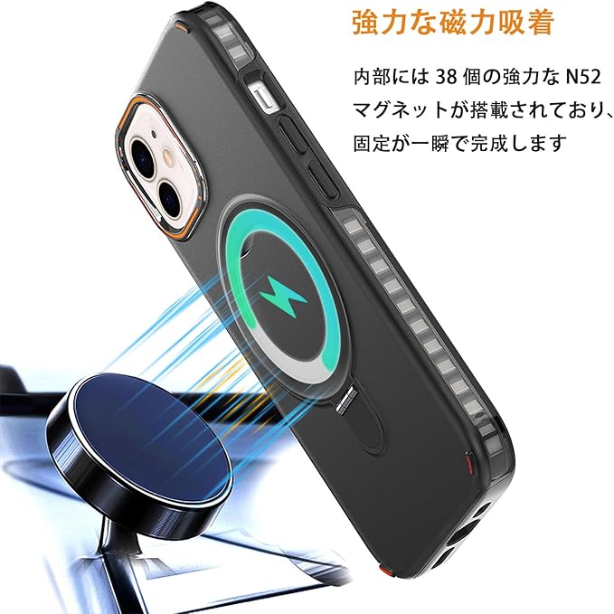 【MagSafe対応・超強磁力】1,900 gの吸着力を備えた強力な内蔵磁石により、吸着力を高めて、安定感をアップしてエネ損失なしの快速ワイヤレス充電できる。MagSafeバッテリー、MagSafeカードケース、MagSafeワイヤレス充電器、MagSafeリング、車載スタンドなど様々なMagSafeニーズに対応。