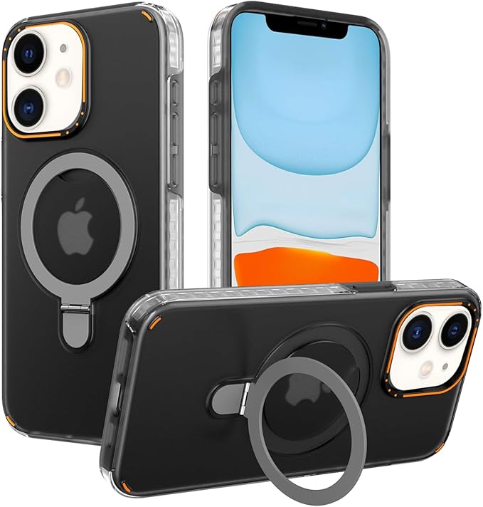 iPhone 11 ケース Magsafe対応 いPhone 11 ケース スマホカバー ワイヤレス充電対応 Halbachマグネット搭載 スタンド機能 米軍MIL規格 耐衝撃 半透明 指紋防止 アイフォン11 カバー PinLiSheng (薄い黒, iPhone 11)