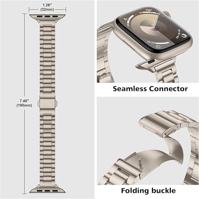 スポーツ バンド と互換性のある Apple Watch Ultraバンド42mm(series10) 41mm 40mm 38mm, ステンレス製 プレミアムステンレススチールメタル交換バンドコンパチブル iWatch Ultra 2 Ultra Series 10 9 8 7 6 5 4 3 2 1 SE に対応 男女兼用,スターライト