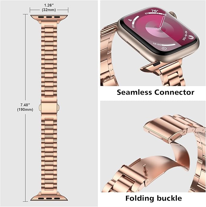 スポーツ バンド と互換性のある Apple Watch Ultraバンド42mm(series10) 41mm 40mm 38mm, ステンレス製 プレミアムステンレススチールメタル交換バンドコンパチブル iWatch Ultra 2 Ultra Series 10 9 8 7 6 5 4 3 2 1 SE に対応 男女兼用,ローズゴールド