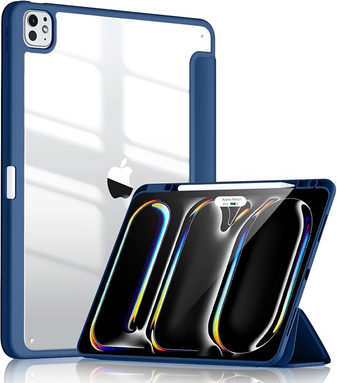 Maledan 対応iPad Pro 11インチ ケース 2024 透明アクリル背面 Apple Pencilの磁気充電と収納対応 軽量防?フルカバー スタンド機能付き オートスリープ/ウェイク 対応iPad pro 11 m4 ケース