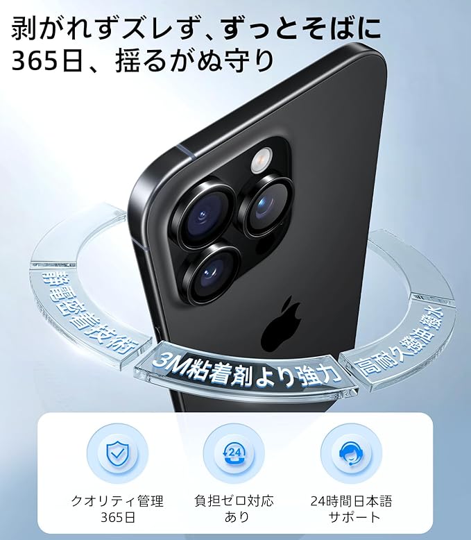 【宇宙航空材料・米軍規格からの保護力】 航空宇宙材料を駆使し、カメラフィルムはNa+/K+イオン交換技術やSCL緩衝層など、30種類以上の革新的な加工技術を採用。これにより、表面に圧縮応力層を形成し、耐衝撃性が20倍以上に強化された。特にiPhone 16 Pro用・16 Pro Maxのレンズが衝撃を受けた際には、その力を瞬時に分散させ、あらゆる方向からの衝撃にも対応。iPhone 16 Pro・16 Pro Maxのレンズ割れを徹底的に防ぐ。表面硬度は9H超え、日常使用の中で発生しがちな過酷