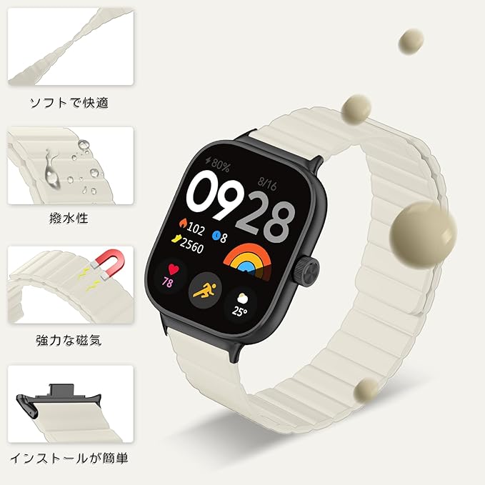 [MokaZii] 交換バンド Xiaomi Redmi Watch 5 /Redmi Watch 4 /Smart Band 9 Pro /8 Pro対応 磁気付き シリコン 替えスポーツバンド 腕時計 長さ調節可能 交換ベルト for Xiaomi Mi Band 9 Pro (スターライト)