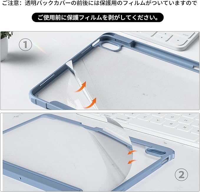 クリアバックカバー: 柔軟なTPUバンパーと透明なハードPCバックシェルで作られており、デバイスの本来の美しさを見せます。iPadを傷や衝撃からしっかりと保護しながら、取り付けや取り外しが簡単です。 (注意:透明バックカバーの前後には保護用のフィルムがついていますので、ご使用前に保護フィルムを剥