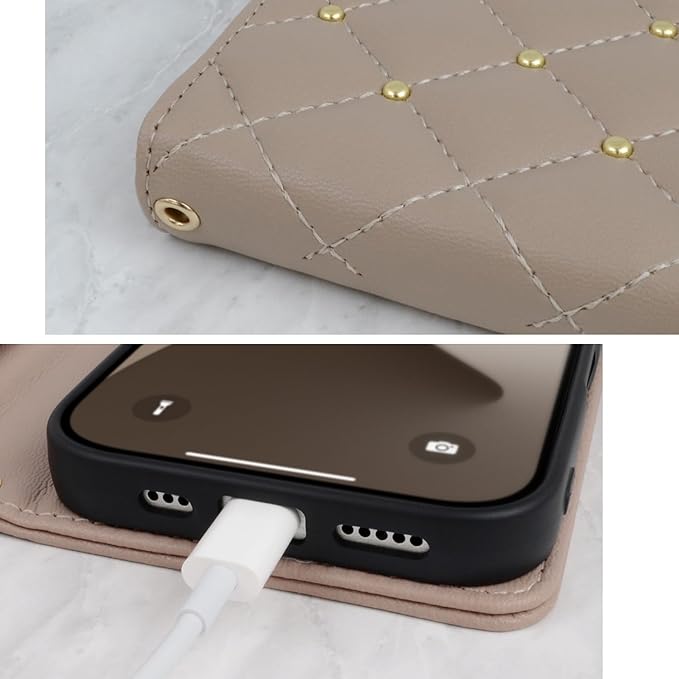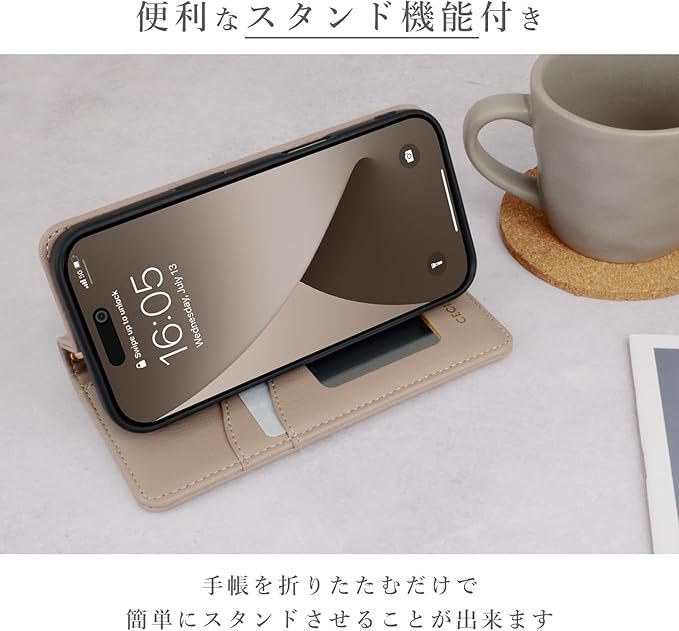 【 CECIL McBEE 正規品 】 iPhone 16 ケース 手帳型 ミラー付き セシルマクビー 「 キルティンク? 手帳ケース 」カード収納 6.1インチ アイフォン16 iPhone16 用 ブランド スマホケース (モカ, iPhone 16)