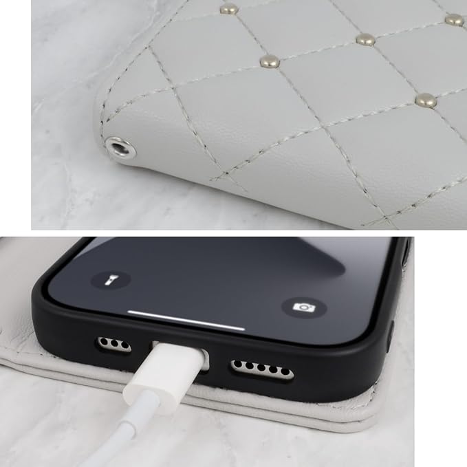 【 CECIL McBEE 正規品 】 iPhone 16 ケース 手帳型 ミラー付き セシルマクビー 「 キルティンク? 手帳ケース 」カード収納 6.1インチ アイフォン16 iPhone16 用 ブランド スマホケース (グレー, iPhone 16)