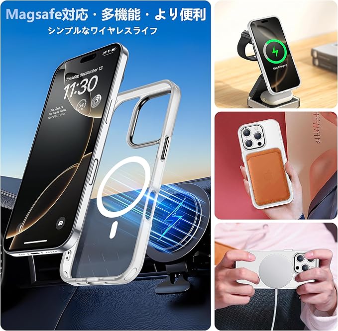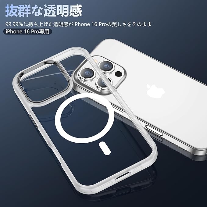 iPhone 16 Pro ケース ホワイト Magsafe対応 カメラレンズ保護付き アイフォン16Pro ケース 米軍MIL規格 耐衝撃 ストラップホール付き 耐久性 黄変防止 いphone16 pro ワイヤレス充電対応 あいほん16Pro SGS認証 PC背面 スマホケース アイフォン16プロ カバー 白 6.3インチ
