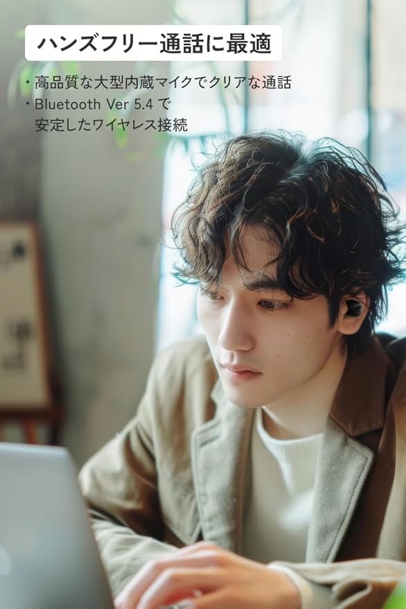 【片耳約3.9gの小型・軽量で、耳にフィットしやすいラウンド型ボディを採用】 イヤホン本体は、質量約3.9g(片耳)と小型・軽量で、耳にフィットしやすいラウンド型ボディを採用。軽快な装着感で使用できます。