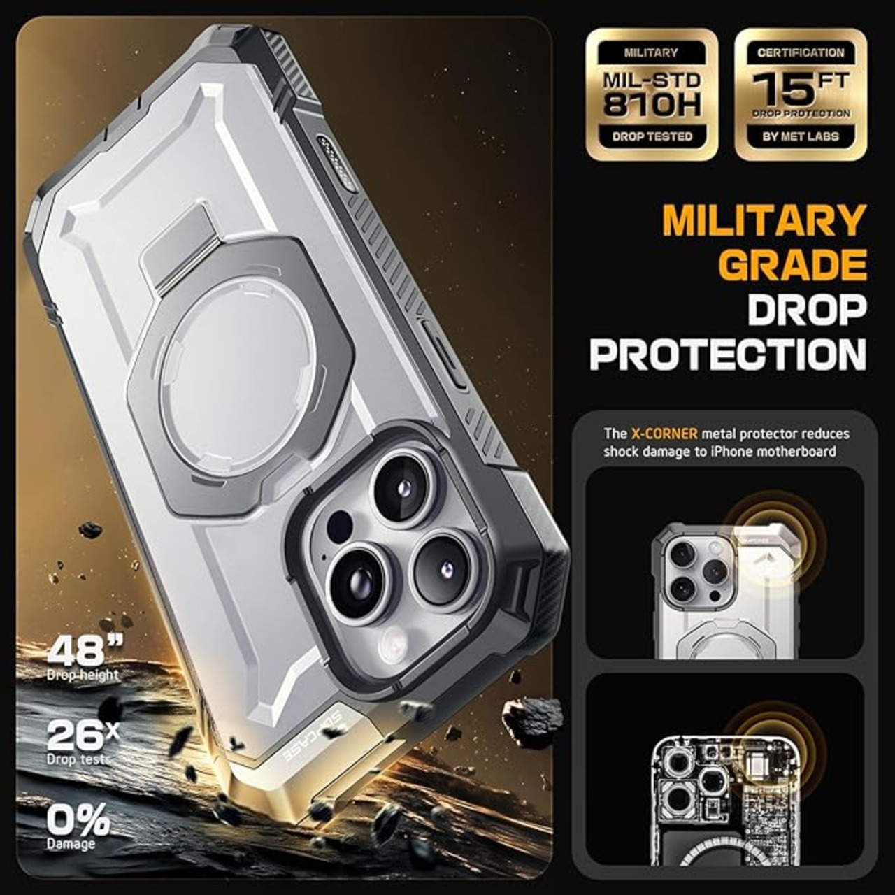 SUPCASE iPhone 16 Pro Max ケース 6.9インチ 2024 カメラコントロールボタン MagSefe対応 内蔵リング スタンド 横縦両立 超強磁力 耐衝撃 軍用規格保護 四角強化 滑り止め ワイヤレス充電対応 UBGripシリーズ