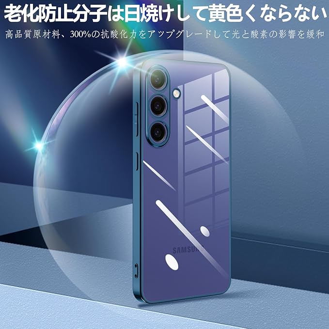 Galaxy S25 ケース クリア 耐衝撃 ギャラクシーS25 スマホケース SC-51F SCG31 ソフト カメラ保護 ワイヤレス充電対応 黄変なし 米軍MIL規格取得 ストラップホール付 (ブルー)