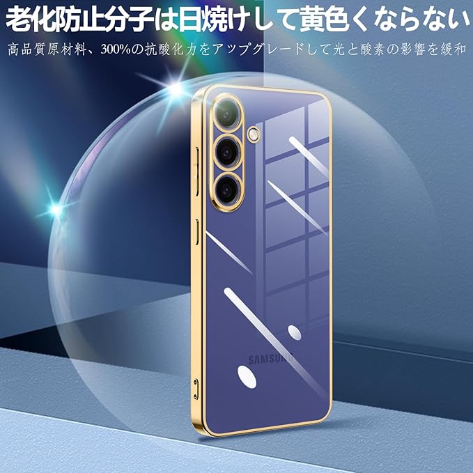 Galaxy S25 ケース クリア 耐衝撃 ギャラクシーS25 スマホケース SC-51F SCG31 ソフト カメラ保護 ワイヤレス充電対応 黄変なし 米軍MIL規格取得 ストラップホール付 (ゴールド)