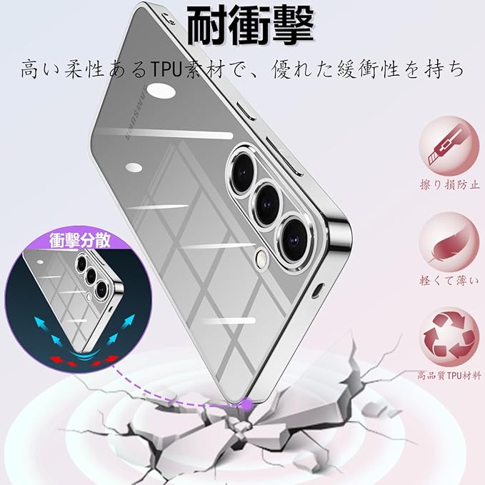 Galaxy S25 ケース クリア 耐衝撃 ギャラクシーS25 スマホケース SC-51F SCG31 ソフト カメラ保護 ワイヤレス充電対応 黄変なし 米軍MIL規格取得 ストラップホール付 (シルバー)