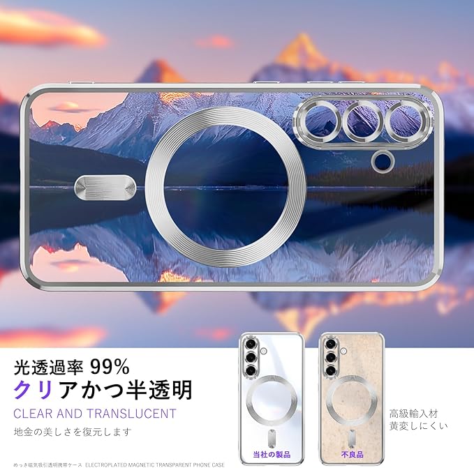 Zeunoen Galaxy S25 ケース MagSafe 対応 メッキ加工 耐衝撃 ギャラクシー S25 5G スマホケース 薄型 クリア 米軍MIL規格取得 SC-51F SCG31 スマホケース 超軽量 カバー 黄ばみにくい 柔軟 擦り傷防止 おしゃれ ストラップホール付き (シルバー)
